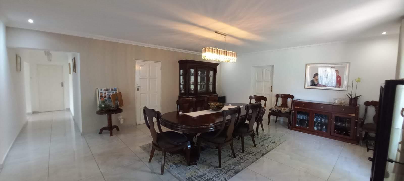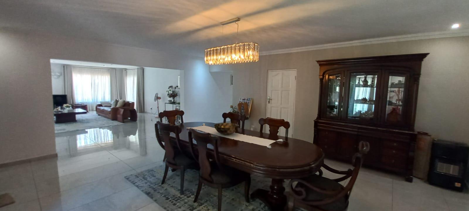 You are sure to love the 2 spacious lounges and large dining room, all with large porcelain tiles, the huge main bedroom with a walk-in wardrobe and full en-suite bathroom, 3 spare bedrooms, full family bathroom, spacious kitchen with a gas hob, extractor fan and oven, separate scullery and sparkling pool. All this set on a large stand with good security features and ample parking!