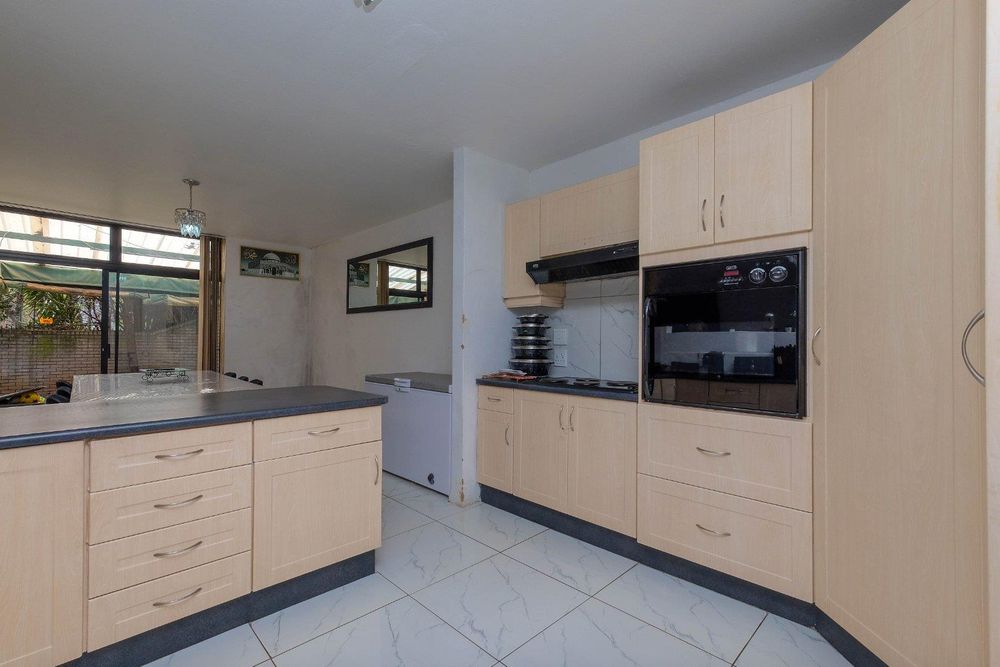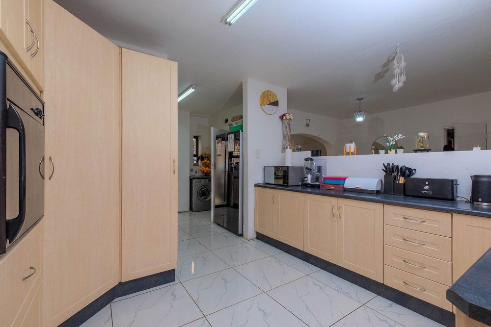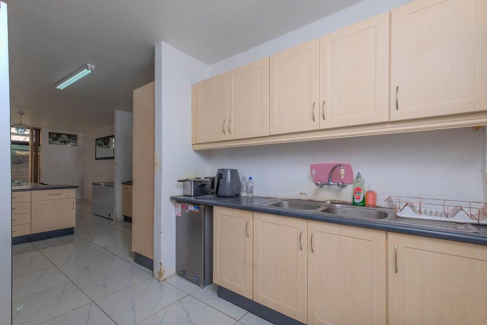 Spacious kitchen with hob, extractor fan, oven, ample cupboards + pantry cupboard