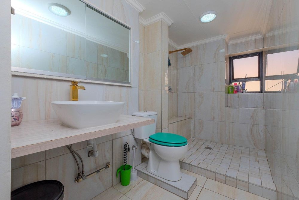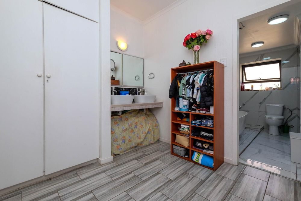 Extra-large main bedroom with walk-in closet, en-suite (bath, double basins, toilet) & door to shared balcony