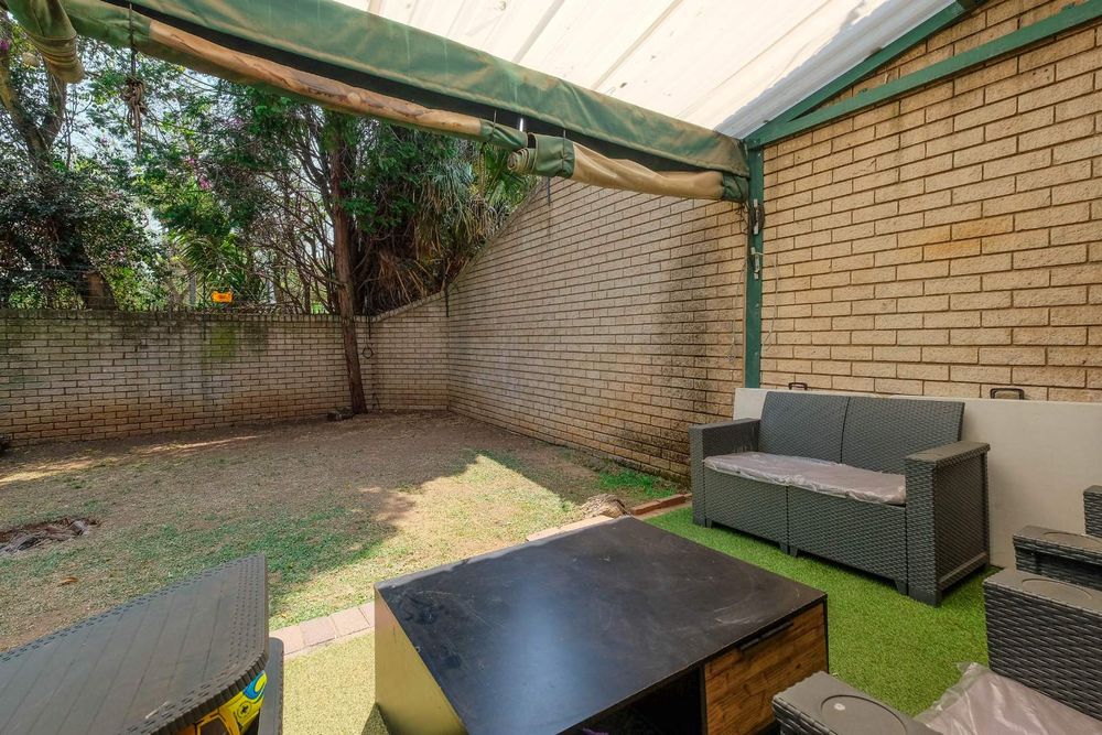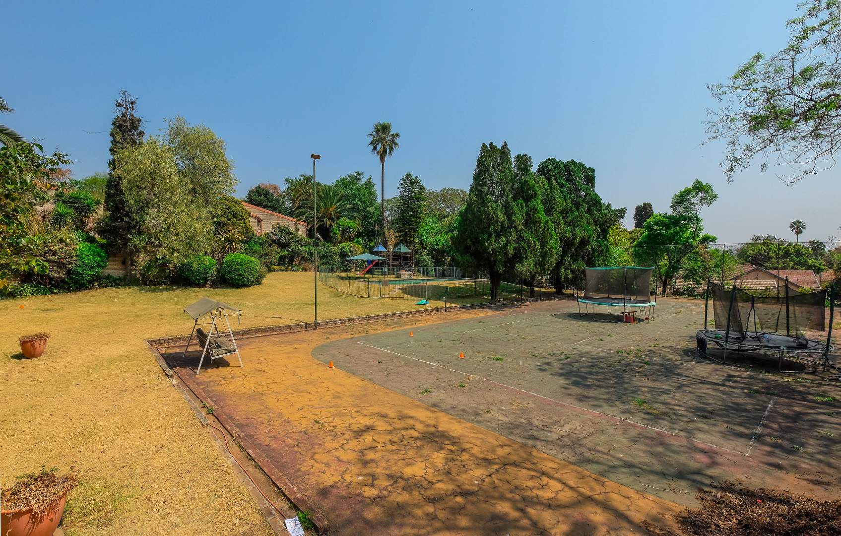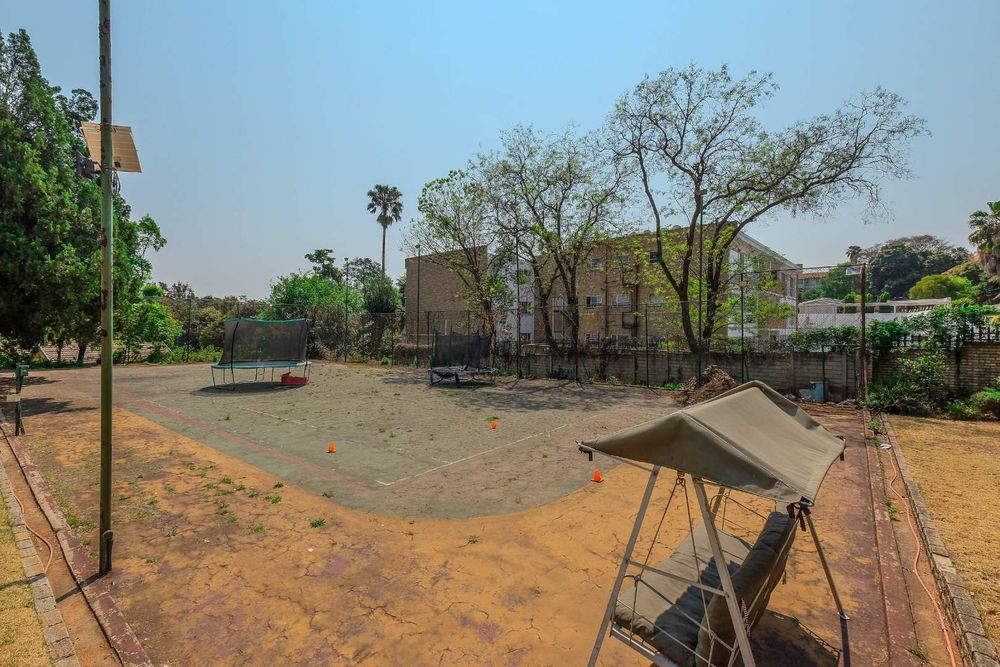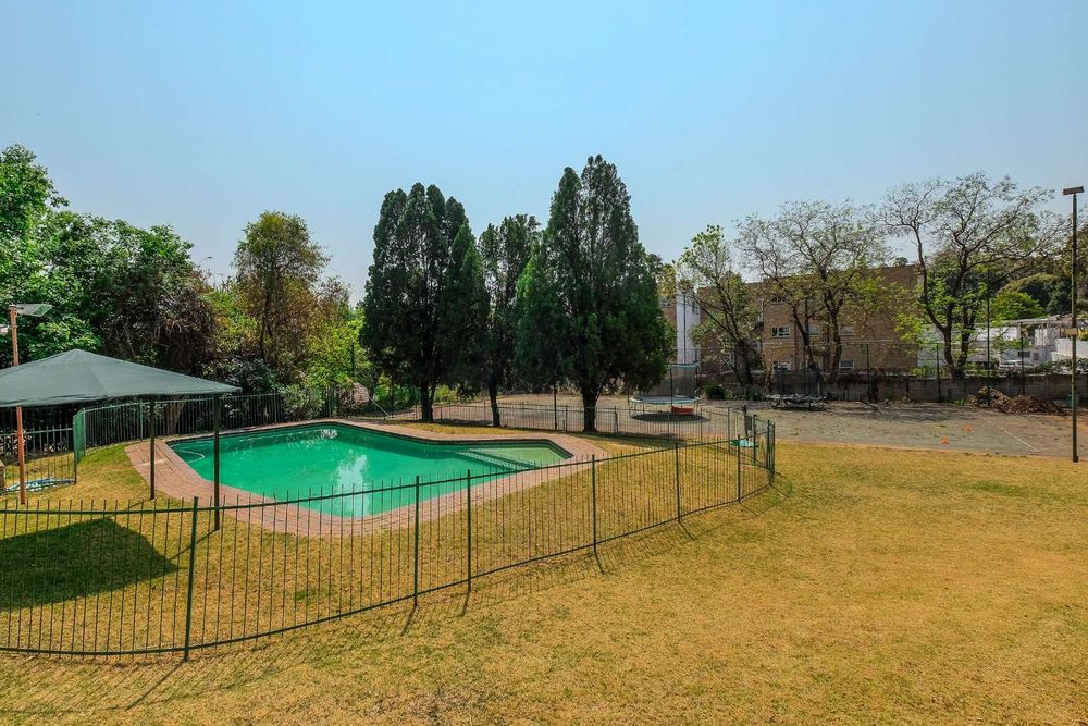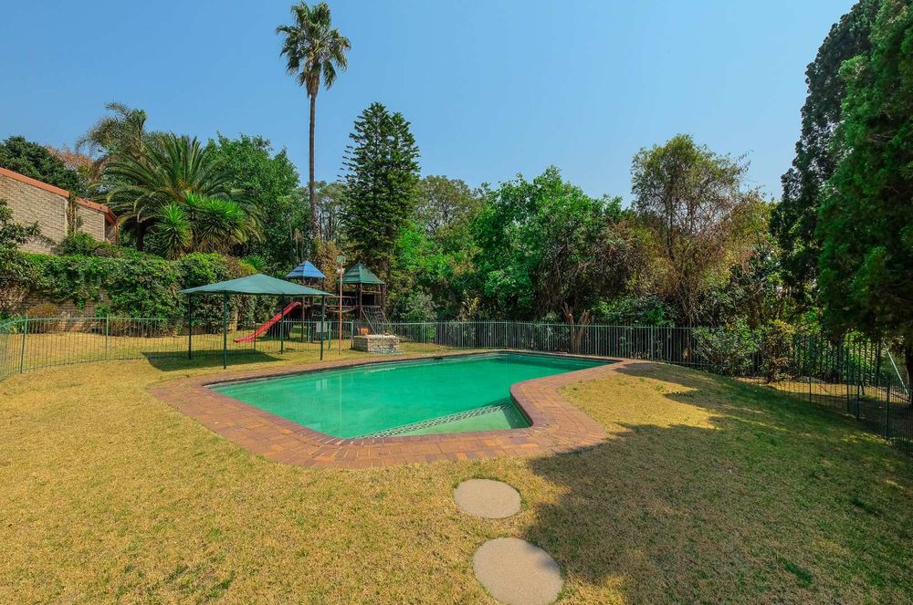 Private garden leading to communal area with fenced pool, large lawn & trampoline