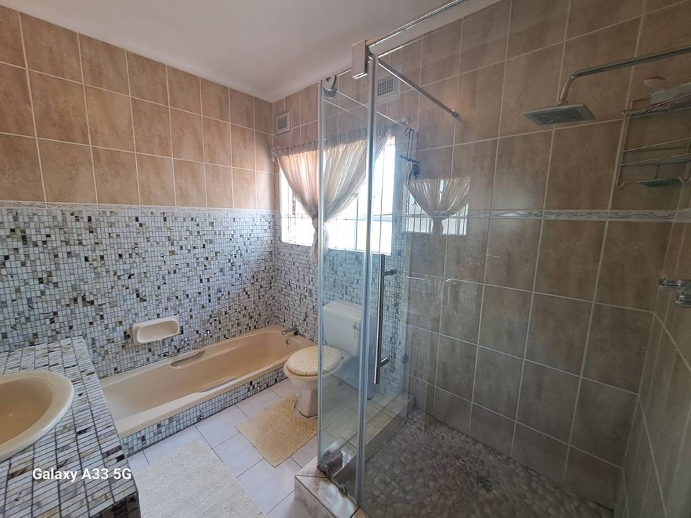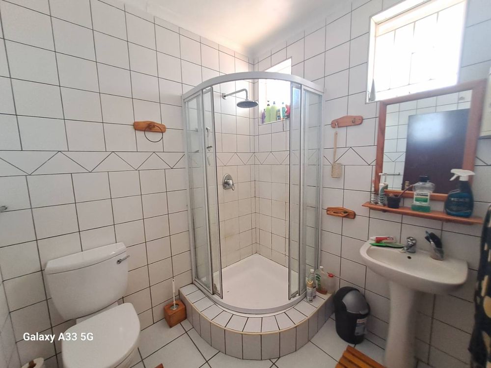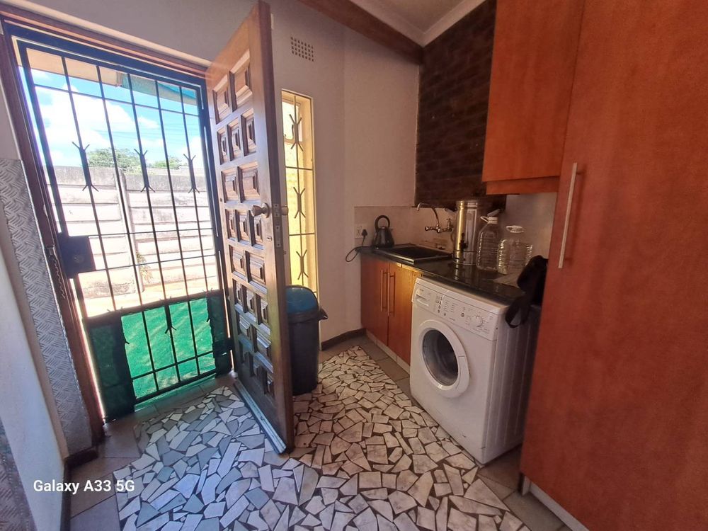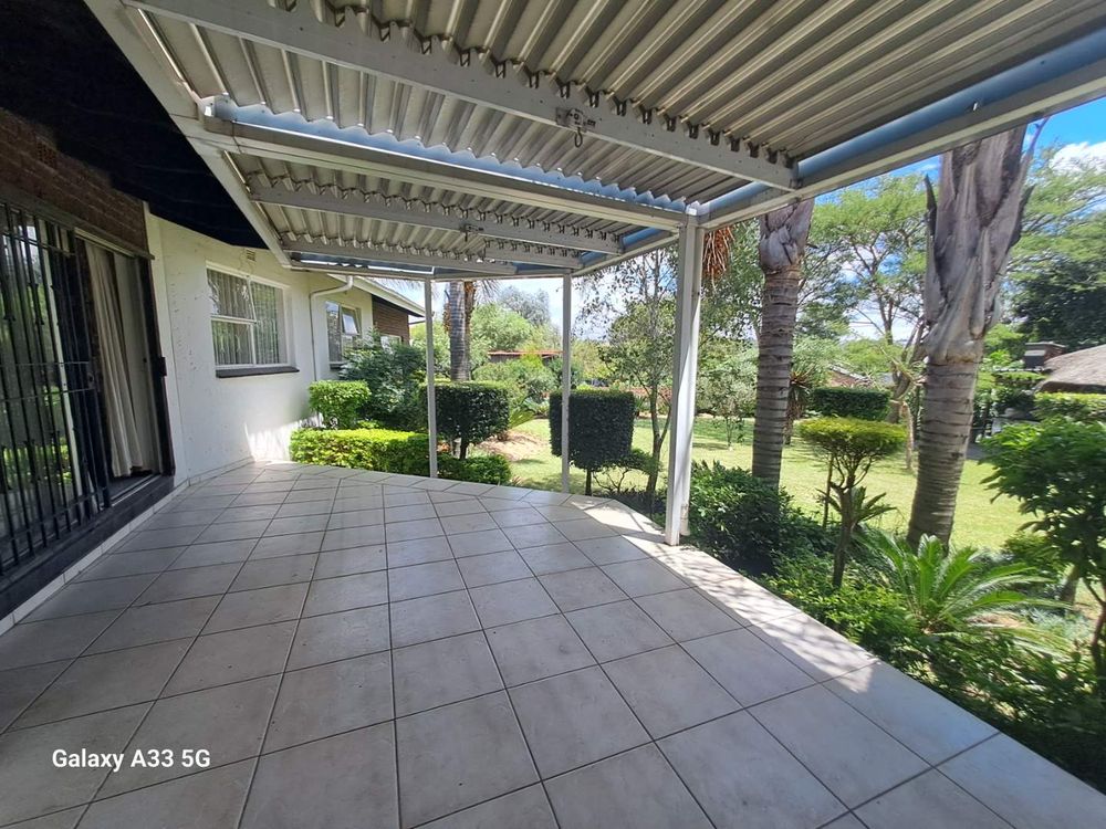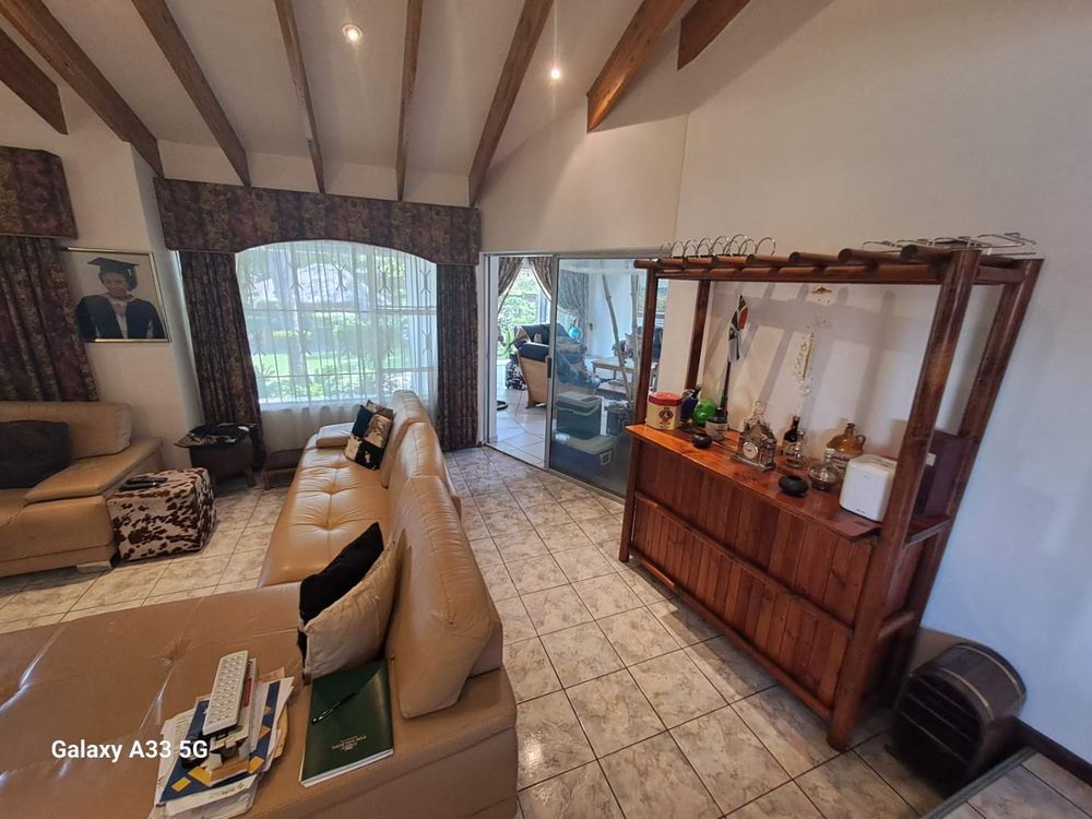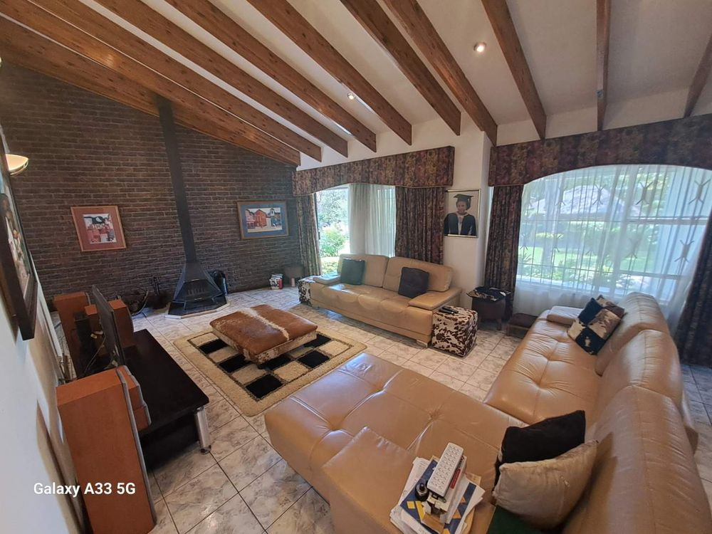 Outdoors, the thatched lapa with electricity overlooks the lush garden – a perfect setting for relaxed gatherings.