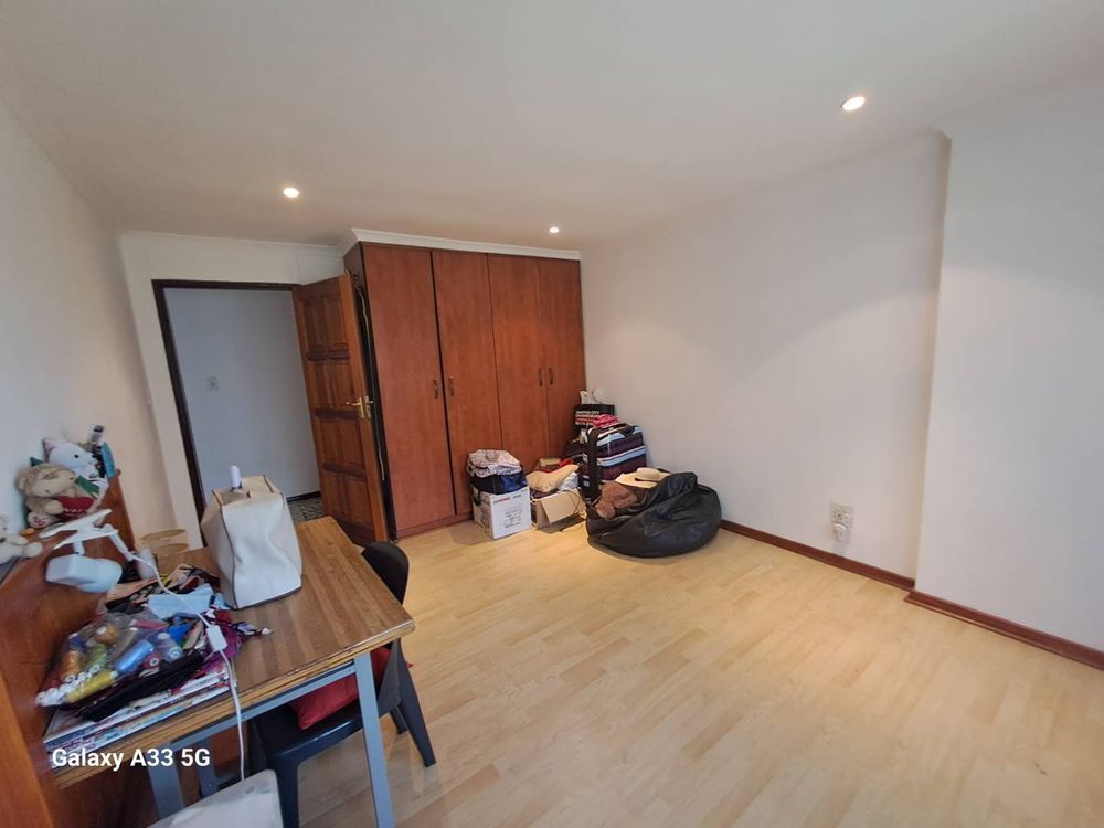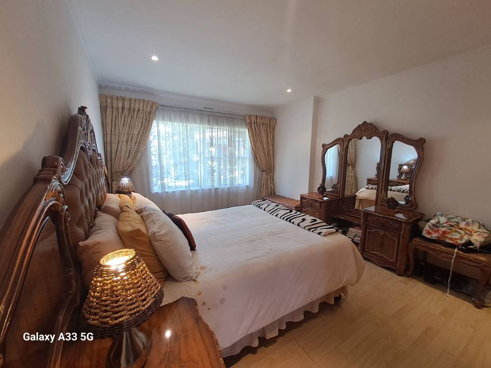 The main en-suite bedroom boasts high ceilings, walk-in cupboards, and a luxurious bathroom with a sunken bath, free-standing shower, vanity, and toilet. A versatile adjoining room with its own en-suite shower makes an ideal nursery, home office (with private garden access), or guest suite. Two additional bedrooms share a full bathroom.
