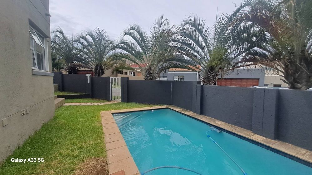 Downstairs you will find an open-plan kitchen and living area leading to an enclosed patio with a built-in braai. This opens to the garden with a refreshing private pool. 2 spacious bedroom and a shared bathroom completes the downstairs.