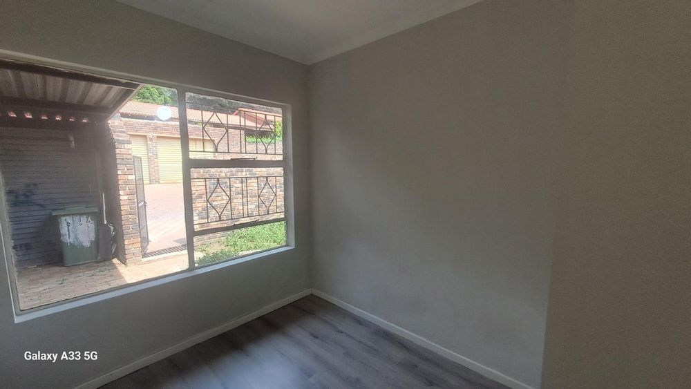 The house offers 3 bedrooms with laminated floors and built-in cupboards, the main-en-suite has a bath, free standing shower, toilet and basin. The family bathroom has a shower, toilet and basin. The open-plan kitchen has granite tops, lots of cupboards, and a gas stove. The living area has enough space for a dining and lounge area. Sliding doors open to a spacious garden. The unit has a double garage.