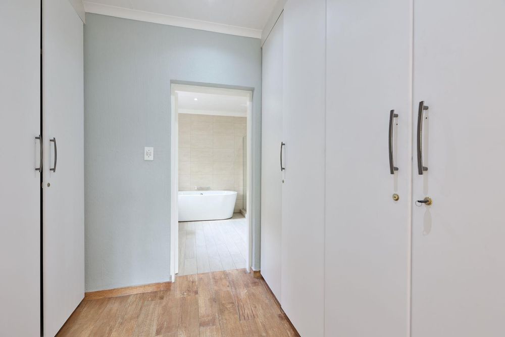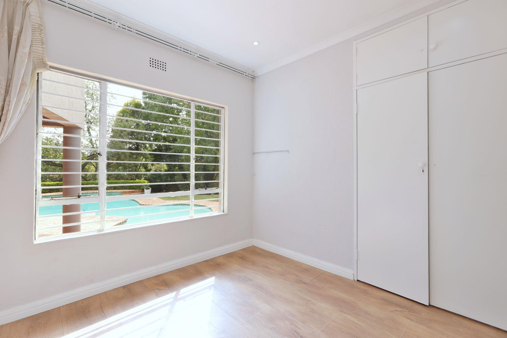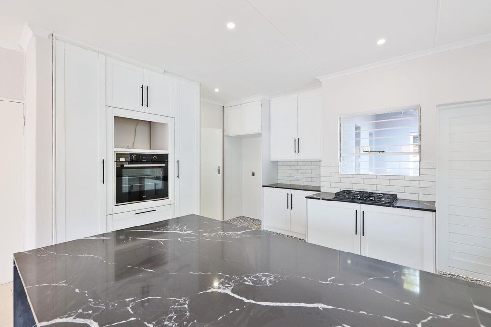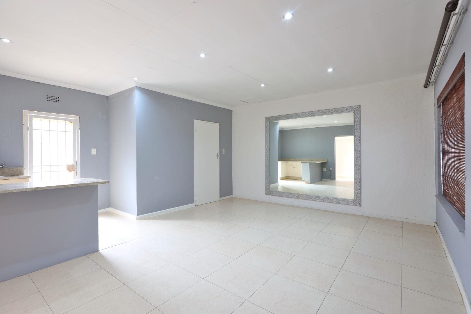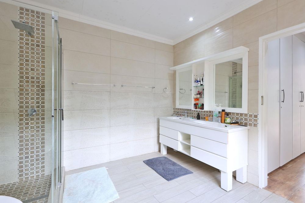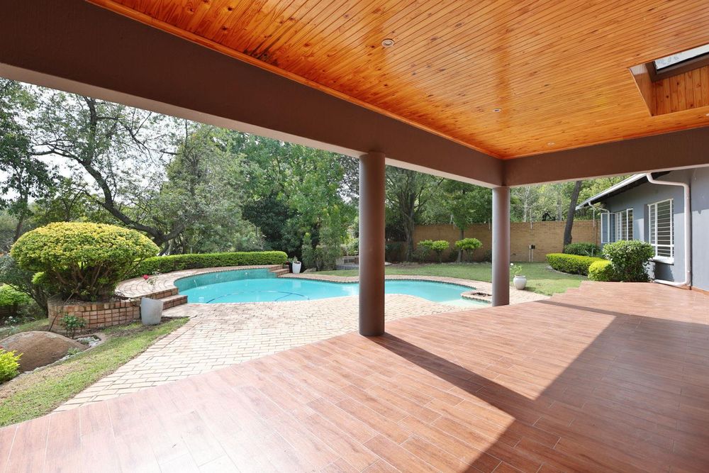 A house to call HOME! Open the heavy solid wooden front door and step into the open-plan dining room and newly renovated kitchen, boasting gorgeous Ceasor Stone counters, a gas hob, eye level oven and ample cupboards. The 2 lounges offer enough space for the adults and the youngsters to entertain their separate friends while the large covered and tiled patio overlooks the tranquil garden. The family bedroom section offers 4 bedrooms and 2 full bathrooms. The main-en-suite is very spacious and has walk-in wardrobes. The bathroom has everything you need, including a double vanity. All 3 spare bedrooms have built-in cupboards. A comfortable study was created in the landing that leads to the one spare bedroom. In a separate wing, you will discover a large room with a kitchenette, en-suite shower room and its own entrance. This is ideal as a guest wing, a student's pad or a comfortable space for your parents.