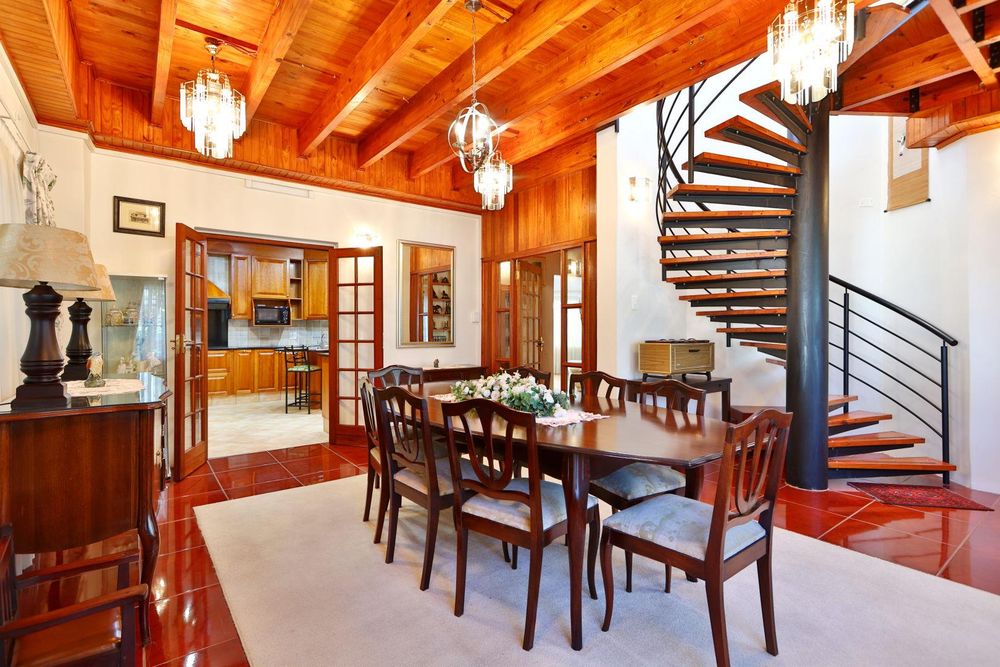 From the dining room a spiral staircase leads to the enormous loft area which can be used for whatever the family might need; an activity room, teenage pad, divide it with a dry wall and create 2 extra bedrooms, make it your in-house movie theatre............... let your imagination lead you!